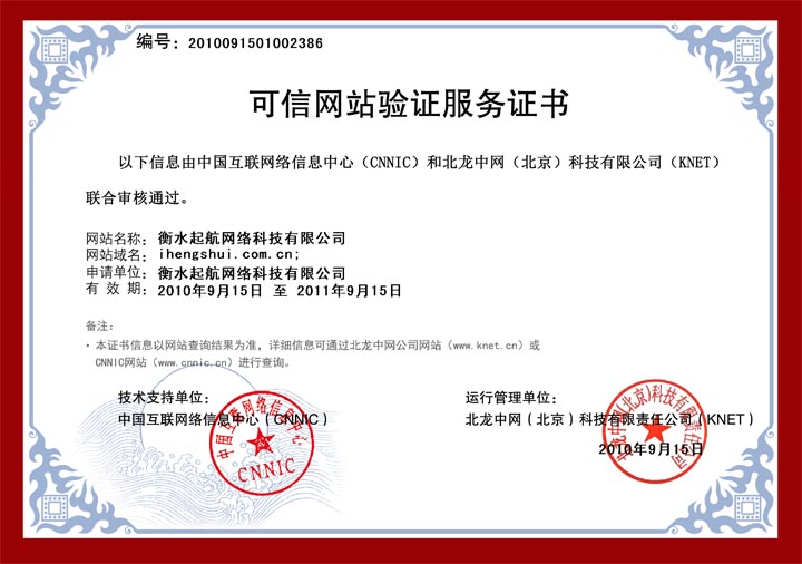 熱烈慶祝衡水起航網(wǎng)絡(luò)科技有限公司順利通過CNNIC可信網(wǎng)站驗證!