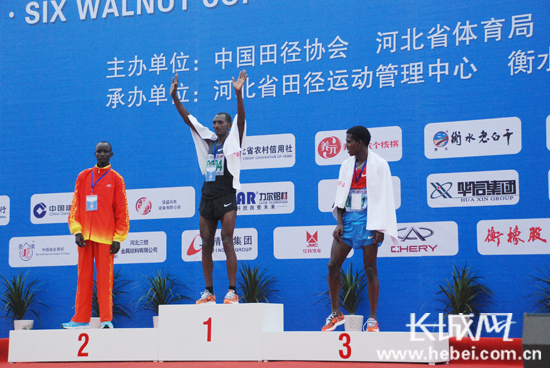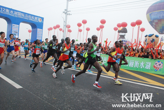 長(zhǎng)城網(wǎng)衡水9月22日電(王永宏 扈煒)今日8時(shí)02分,2012衡水湖國(guó)際馬拉松賽鳴槍開跑,在衡水湖國(guó)際馬拉松賽廣場(chǎng),來(lái)自世界26個(gè)國(guó)家和地區(qū)的參賽選手及馬拉松愛好者沖出起點(diǎn)。經(jīng)過激烈角逐,來(lái)自埃塞俄比亞選手雷格塞·海路·梅克楠以2小時(shí)8分7秒、黛米西·埃塔勒瑪胡·基達(dá)妮以2小時(shí)28分3秒的成績(jī)包攬全程馬拉松賽男女組冠軍。